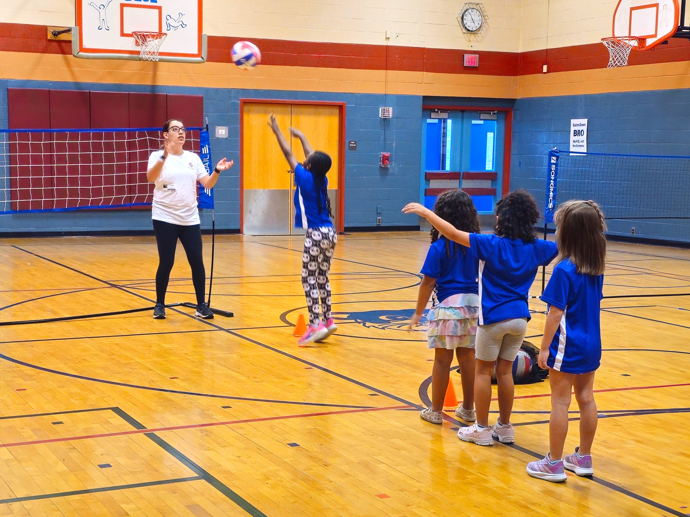 Key volleyball skills (serving, passing, setting, hitting) through age-appropriate drills
